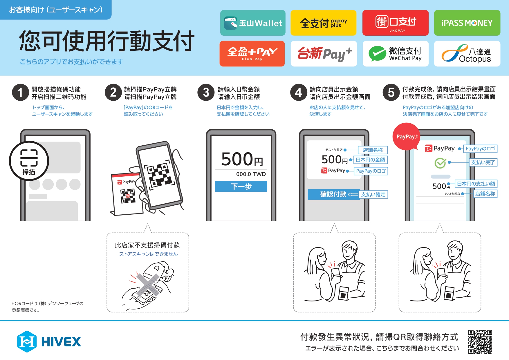 お手持ちのスマートフォンを使って簡単に決済ができます!